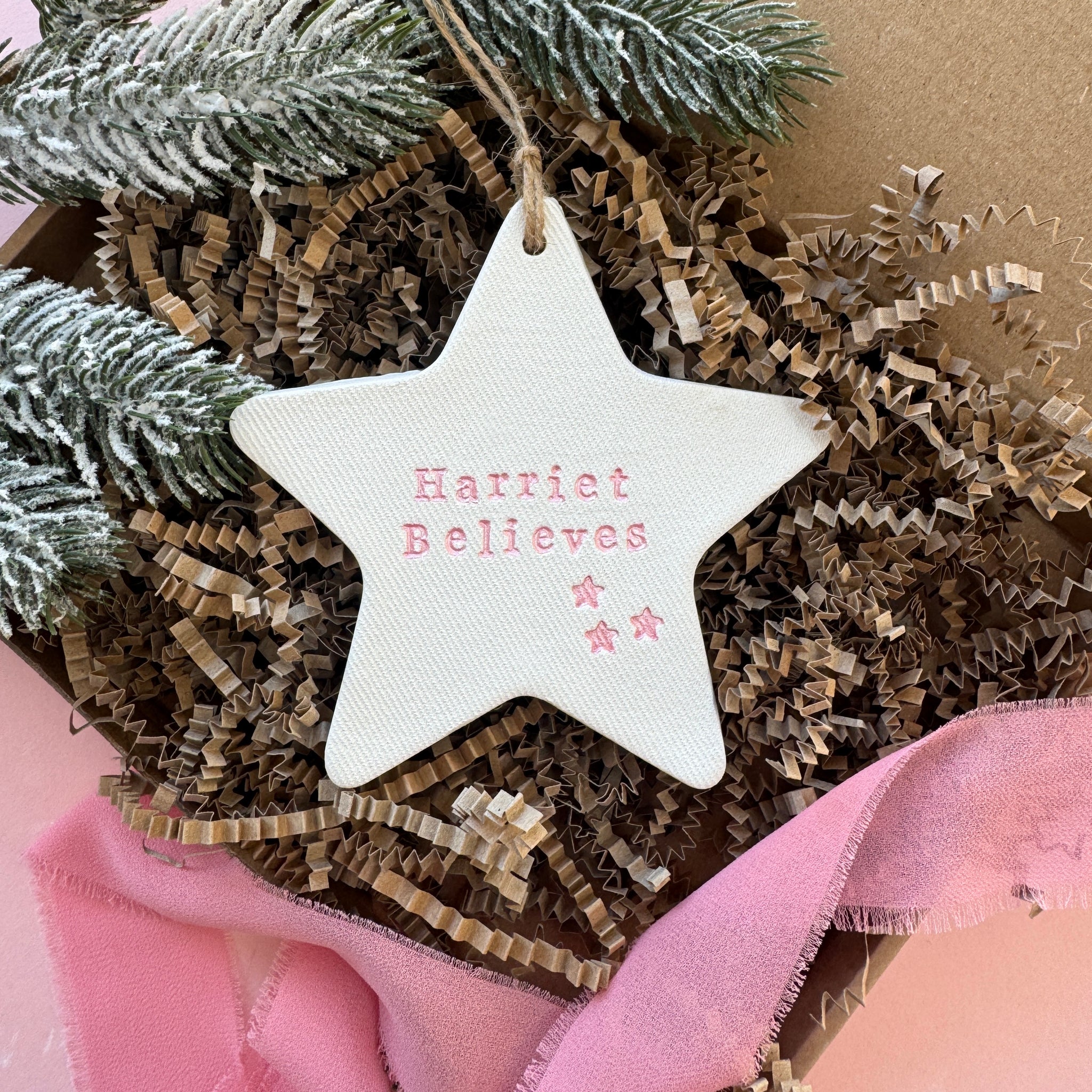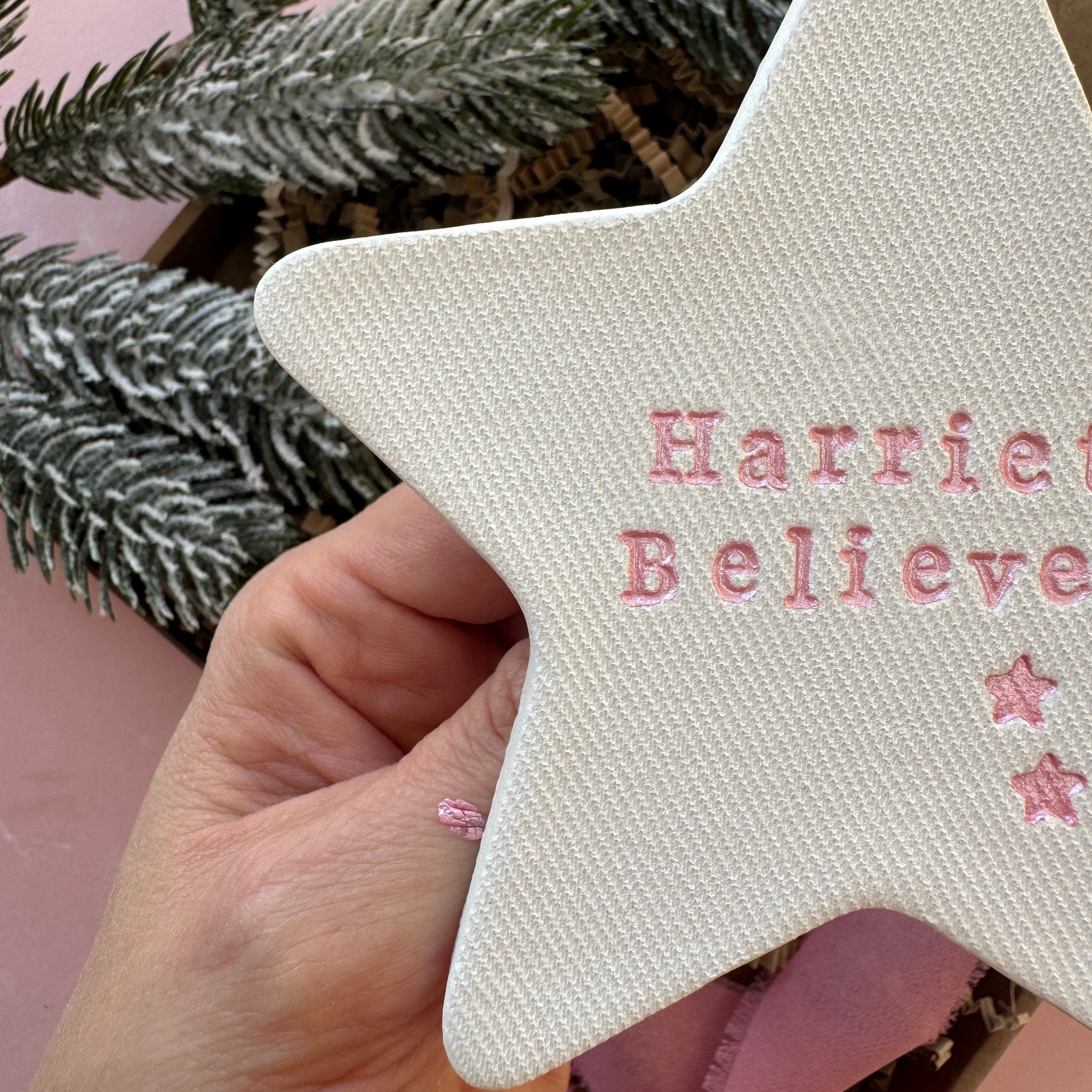 PERSONALISED CHRISTMAS STAR BELIEVE DECORATION