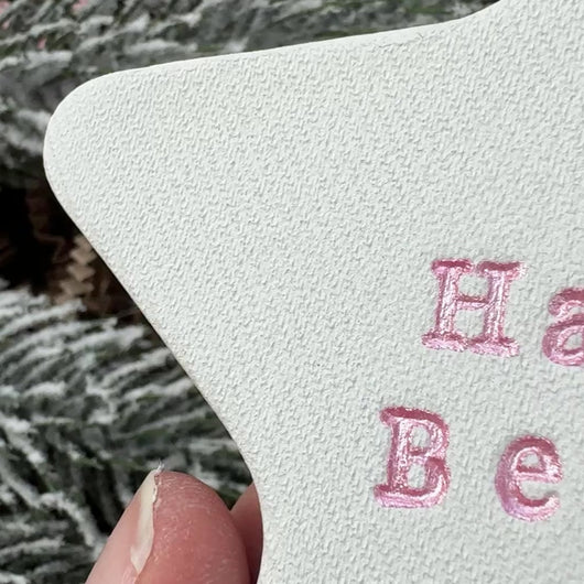 This is a personalised CHRISTMAS star decoration made out of clay, completely handmade from start to finish. These are perfect to add that unique personal touch for Christmas. Add to your children’s Christmas sacks or stocking, or simply add to your Christmas decor for that special personalised touch at Christmas .