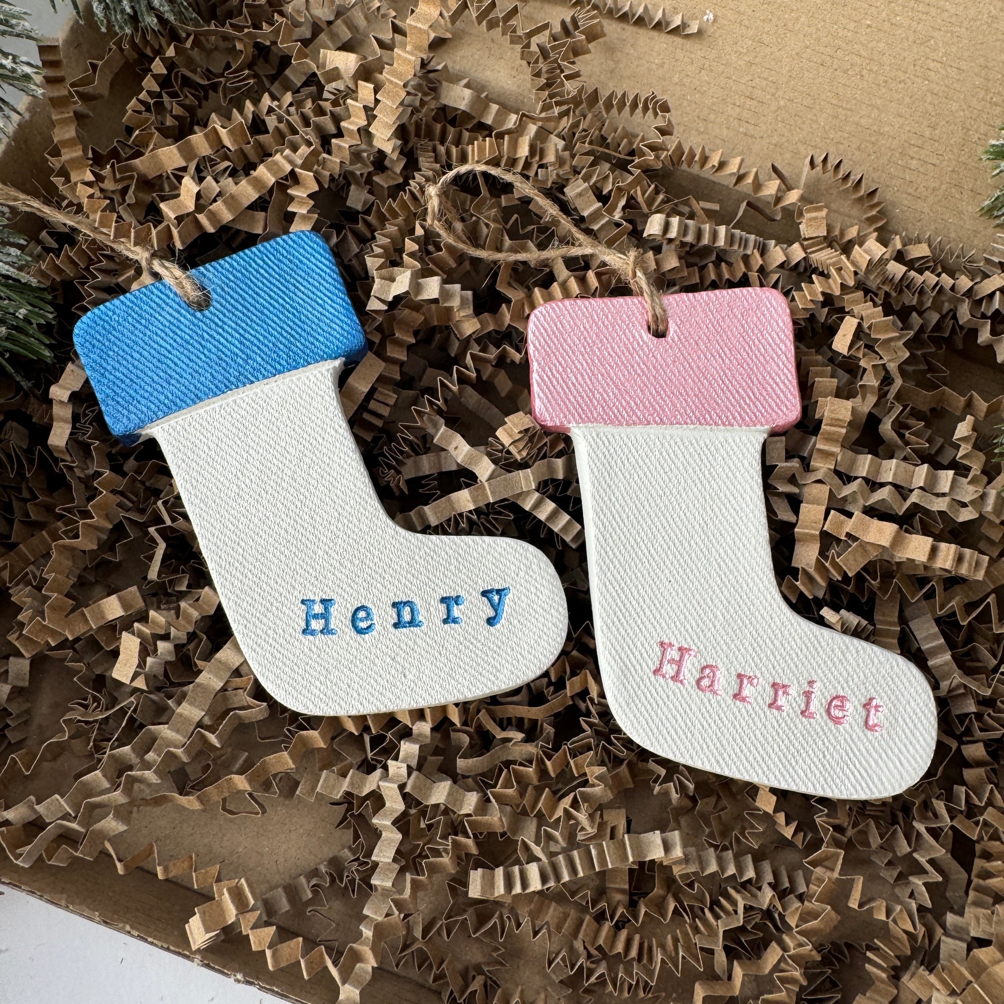 This is a personalised CHRISTMAS gift tag decoration made out of clay, completely handmade from start to finish. These are perfect to add that unique personal touch for Christmas. With lots of different colours to choose from these gift tags are perfect to add to any Christmas theme colour to your children’s gifts this Christmas