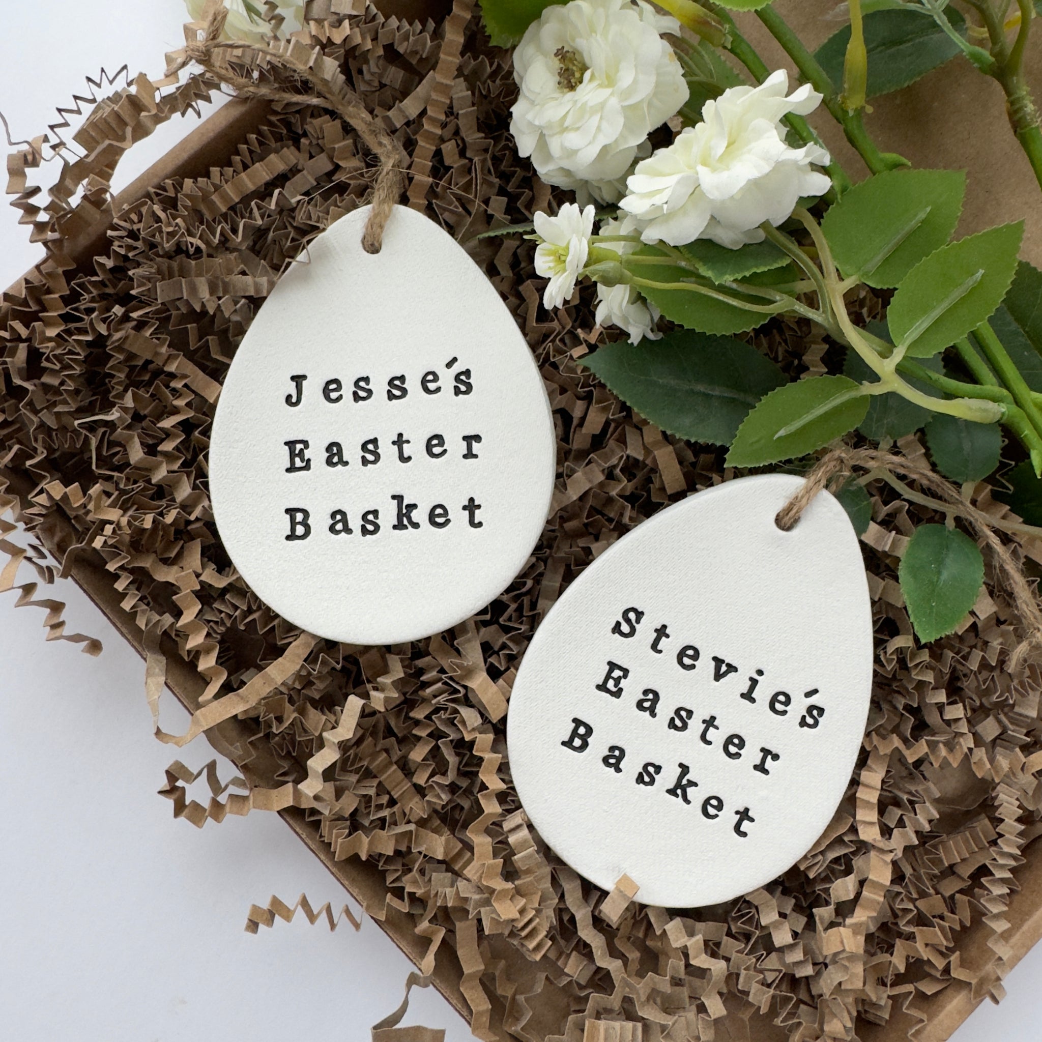Each egg is individually shaped from clay, carefully painted by hand, and personalised with a name, making it the perfect finishing touch for an Easter basket, gift box, or spring display. No two are exactly alike, which is part of their magic.