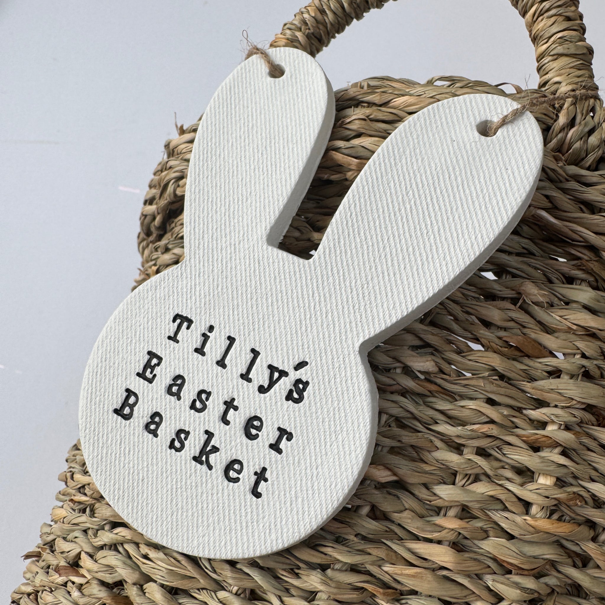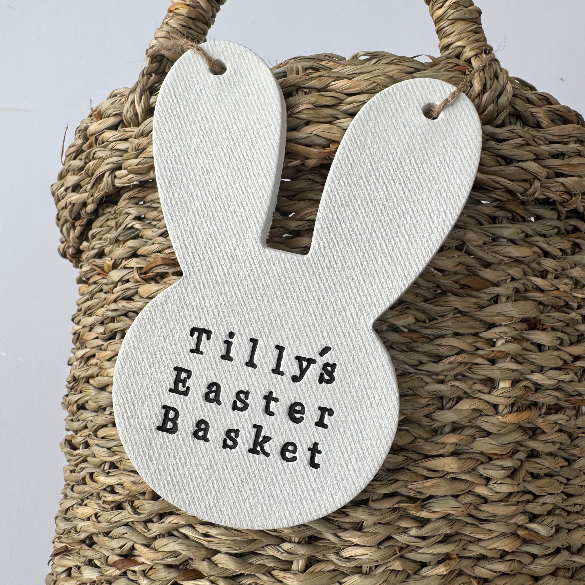 Designed to hang neatly from an Easter basket or hook, this sweet rabbit brings a soft, rustic feel that pairs beautifully with natural, neutral Easter decor.